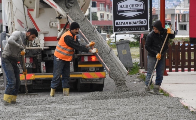 Düzce Belediyesi Fen İşleri Müdürlüğü Düzce Beyciler Mahallesinde bazalt beton dökme kaldırım çalışmasına başladı.