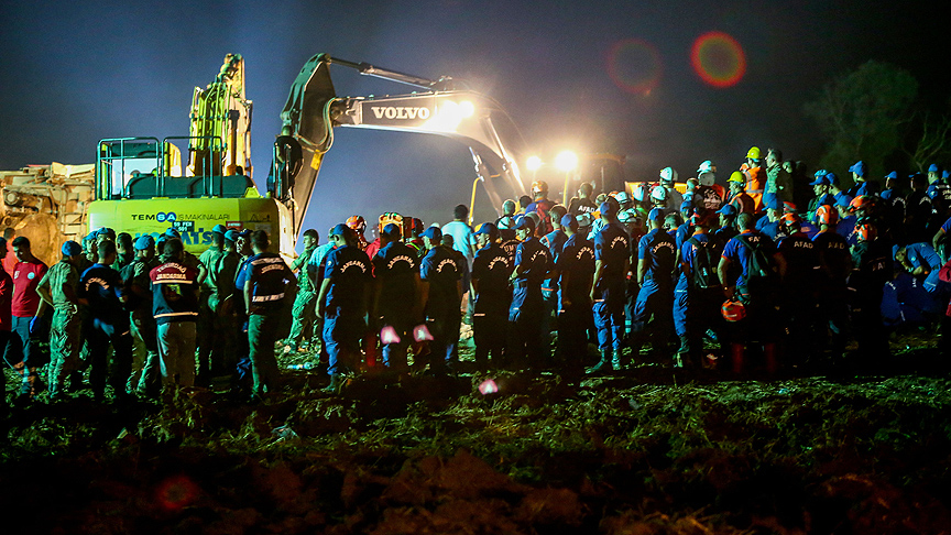 Yağış sebebiyle zeminin çok yumuşak olması başlangıçta bazı zorluklara yol açmışsa da ifade ettiğim gibi süratli ve etkin bir müdahale kazanın hemen akabinde gerçekleştirilmiştir. Tekrar hayatını kaybeten bütün kardeşlerimize rahmet, yaralılarımıza da acil şifalar diliyorum."
