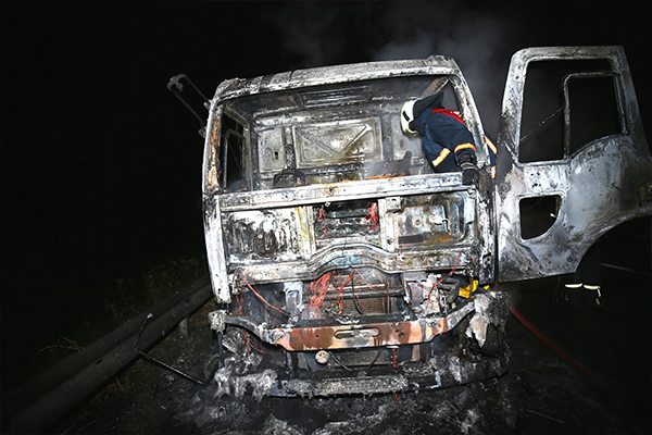 Kamyonun kullanılamaz hale gelmesine neden olan yangının çıkış nedeninin tespiti için çalışma başlatıldı.