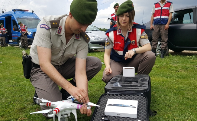 Uzman erbaşlar karada arama tarama faaliyetlerine devam ederken Merkez İlçe Jandarma Komutanı Üsteğmen Bahadır Karadağ ve bağlı ekiplerinde bulunan rütbeli personeller ise havadan drone yardımı ile görüntü almaya çalıştılar. Ormanlık ve sık otlarla kaplı alanların üzerine indirilen dronelerden yasa dışı ekilen uyuşturucu maddelerin görüntüleri alınmaya çalışıldı.