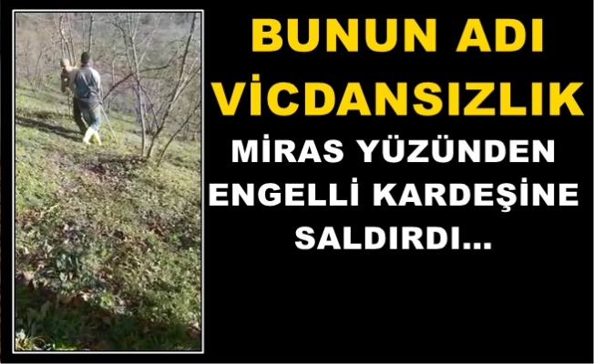 Düzce’de 3 Aralık Dünya Engelliler Gününde, yüzde 60 ortopedi engelli bir vatandaşa saldırı anı cep telefonu kameralarına yansıdı. Merkeze bağlı Düverdüzü Köyünde babasından miras kalan fındık bahçesine eşi Kübra Gökmen ile birlikte çalışmaya giden yüzde 60 Ortopedi Engelli Fahri Gökmen ile abisi Erdoğan Gökmen arasında, miras paylaşımı yüzünden tartışma çıktı. Erdoğan G., kardeşi engelli Fahri Gökmen’i , ‘Buraya neden geldiniz? Çıkın buradan.’ diyerek bahçeye girmesini engellemeye çalıştı.
