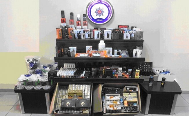 Düzce’de düzenlenen operasyonda çok sayıda elektronik sigara ve elektronik sigara yedek parçası ele geçirildi.