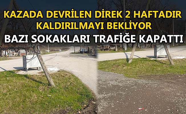 Ancak kazanın üzerinden 2 hafta geçmesine rağmen Telekom yetkilileri, devrilen direği bulunduğu yerden kaldırmadı.