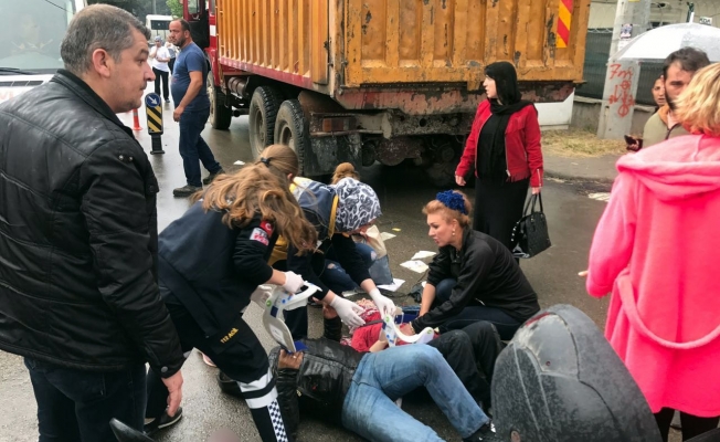 Düzce kent merkezinde kamyon ile motosikletin karıştığı trafik kazasında 3 kişi yaralandı.