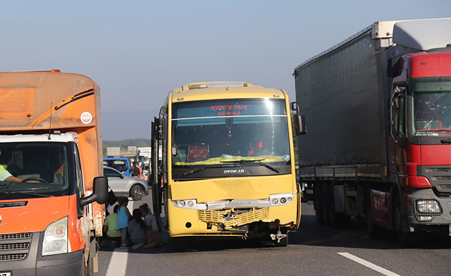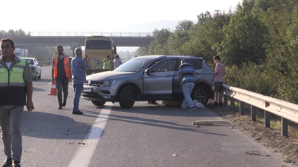 Alınan bilgiye göre, 16 KJE 41 plakalı midibüsün sürücüsü Volkan Y, Anadolu Otoyolu'nun Kaynaşlı mevkisinde meydana gelen hasarlı kazayı izlerken önünde seyreden Nurettin Y'nin kullandığı 34 FZ 5558 plaklı cipe çarptı.
