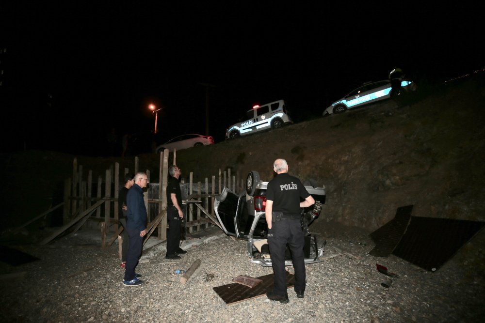 Yaklaşık 5 metre yüksekten devrilen otomobildeki Enes Tezcan (15) ile Ahmet Şobak (16) yaralandı.