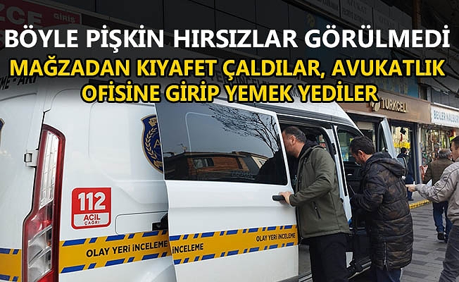 Düzce’de yaşanan hırsızlık olayı, ‘Bu kadarına da pes!’ dedirtti. Dün akşam saatlerinde önce girdikleri mağazandan kıyafet çalan hırsızlar, ardından da İstanbul Caddesi üzerinde bulunan Düzce İş Merkezindeki İsmail Can Avukatlık ofisine girdi. Avukatlık ofisinde mutfağa yönelen pişkin hırsızlar, kendilerine yemek pişirerek yediler. Son olarak mağazadan çaldıkları kıyafetleri üzerlerine giyen hırsızlar, avukatlık bürosundan ayrıldı.