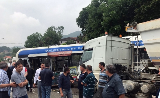 Kaza D-655 karayolu kabalak sapağında meydana geldi.Edinilen bilgilere göre D-655 karayolu Akçakoca istikametinden Düzce istikametine gitmekte olan Hüsamettin Işık idaresindeki 06 DC 7164 plakalı tır yağmur nedeni ile kayganlaşan yolda yolun karşı tarafına dönmek isteyen Cüneyt Ç. İdaresindeki 81 ER 423 plakalı yolcu otobüsüne kayarak çarptı. Çarpmanın etkisi ile savrulan otobüste yolcu bulunmaması faciayı önlerken tır sürücüsü ise hafif yaralandı.