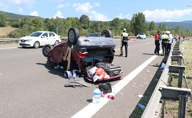 Anadolu Otoyolu'nun Bolu kesiminde tır ile çarpıştıktan sonra takla atan otomobildeki 1 kişi ödü, 4 kişi yaralandı.