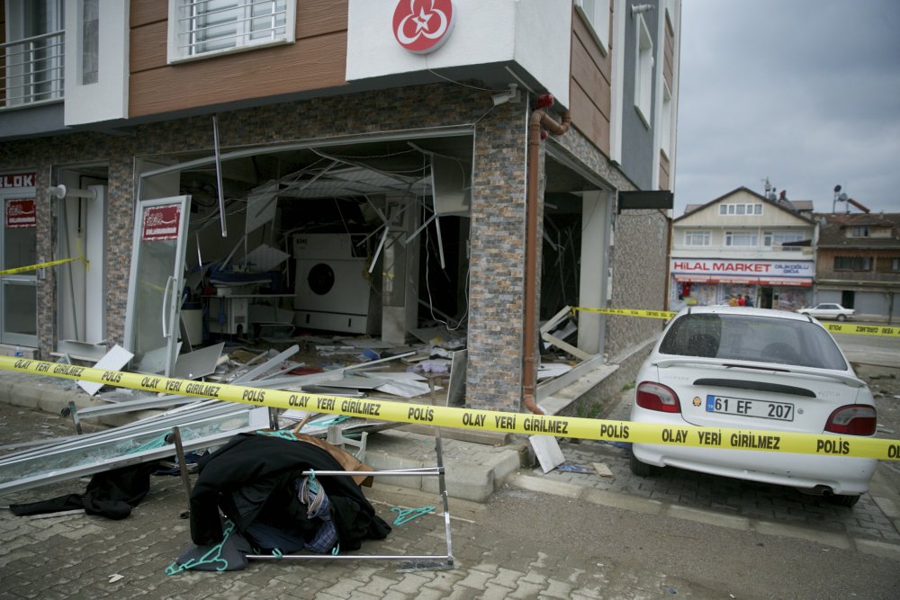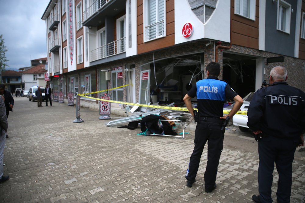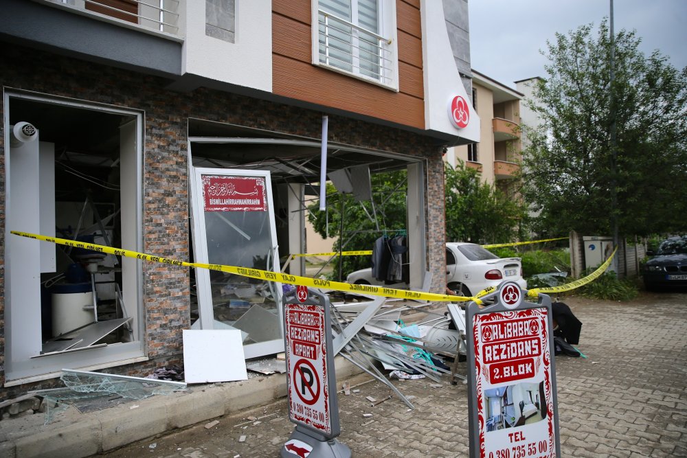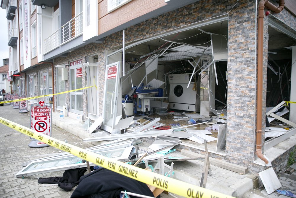Bu arada, patlama nedeniyle iş yerinin cam ve çerçeveleri sokağa dağıldı.