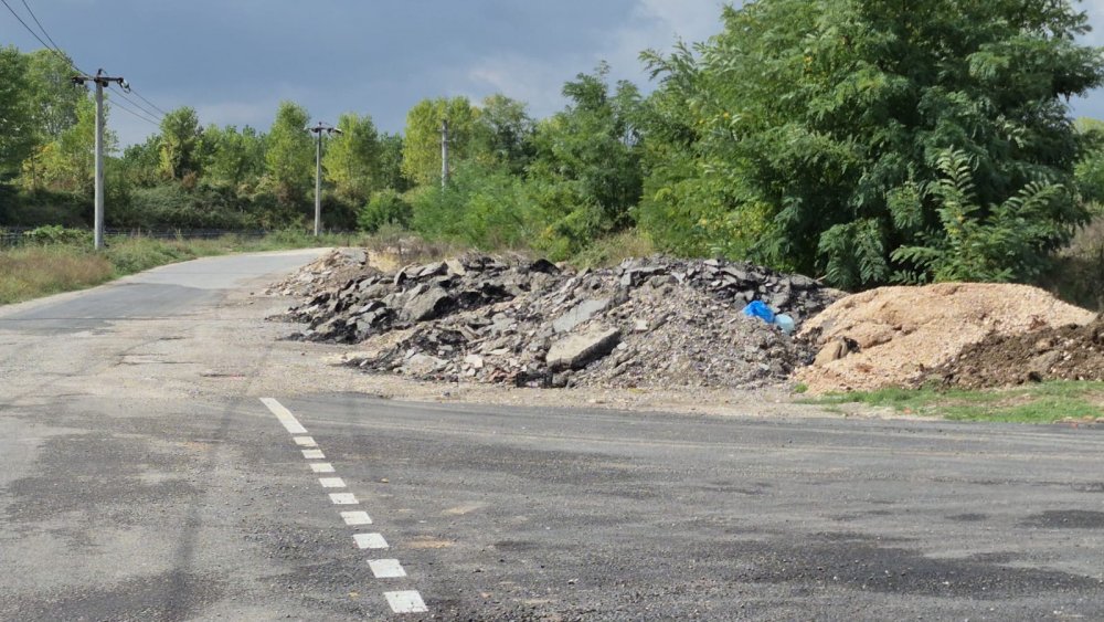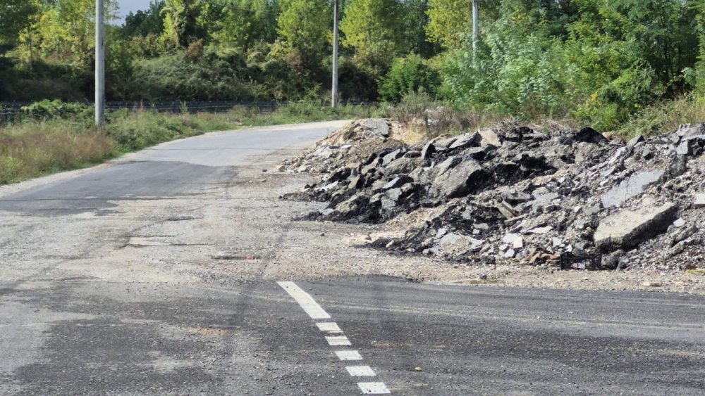 Düzce şehir merkezinde yol kenarında bulunan moloz ve asfalt yığınları çevre ve görüntü kirliliği oluşturuyor.