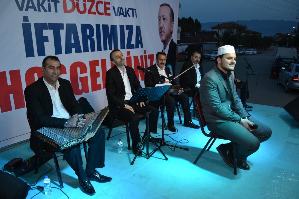 Düzce Milletvekili Fevai Arslan, Belediye Başkanı Muhsin Yavuz, Milletvekili Adayı Numan Çabuk haziruna selamlama konuşması yaptıktan sonra davetliler ney musikisi eşliğinde iftarlarını açtılar.