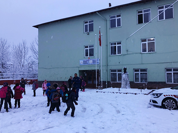 Düzce İl Jandarma Komutanlığı Jandarma Trafik ekipleri, kentte kar yağışı nedeniyle 2 gün eğitime ara verilen ve bugün yeniden dersbaşı yapılan okulların önünde servis denetimi gerçekleştirdi.