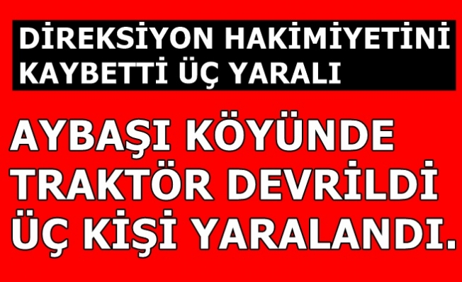 Kaza, dün akşam saatlerinde 20:45 sıralarında merkeze bağlı Aybaşı köyünde meydana geldi. Alınan bilgilere göre, Adem Ç. (45) idaresindeki traktör Aybaşı köyü yolunda sürücüsünün direksiyon hakimiyetini kaybetmesi sonrası devrildi. Devrilen traktörün sürücüsü Adem Ç.(45) ile traktörde yolcu olarak bulunan İsmet Ç.(67) Nihat Ç.(9) yaralandı. Kaza yerine ulaşan sağlık ekiplerinin yaralılara ilk müdahaleyi kaza yerinde yapmasının ardından çeşitli hastanelere sevk ederek tedavi altına aldı.