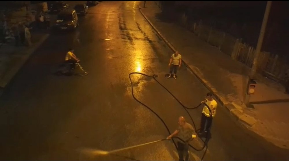 Temizlik İşleri Ekiplerinin çalışmalarına katılan Belediye Başkan Yardımcımız Özkan Akbulut, Ana caddede yıkama işlemine yardım etti.