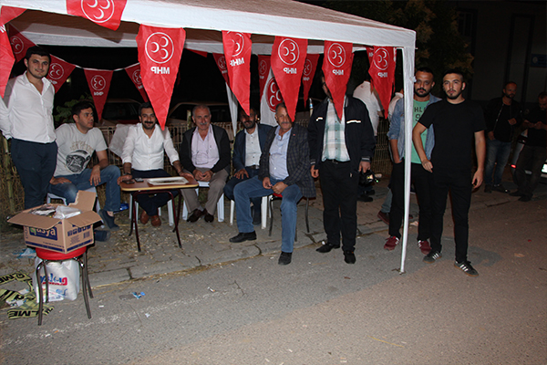 MHP’liler YSK’nın önünde kurdukları stant da çorba içmeleri, gelenlere çay ikram edildiği de gözlemlendi.