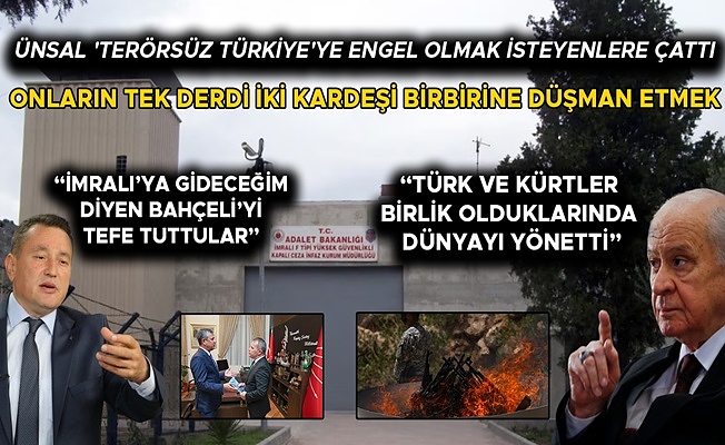 Yüzyıllardır Türk ve Kürt Kardeşliğinin dünyayı yönettiğine dikkat çeken Ünsal, “Nasıl bir yapıysa bu, ölen Kürt Ahmet'in, dağdaki Kürt Ahmet'in dedesiyle, onunla savaşan Türk Mehmetçiğin, ordunun, Mehmet'in dedesi İhya-i Kelimetullah'ta, devlet-i ebedi müddet duygusunda, Çanakkale'de, Yemen'de, Trablus'ta dünyanın her yerinde beraber can verdiler. Candaştılar. Şu anda düşman mı oldular? Kim yaptı bunu? Bunun bedeli çok ağır oldu bu ülkeye. Ya birileri, bu işten nemalanmaya çalışıyor. Bitsin bu kavga, bitsin bu düşmanlık. Birisi el atmış. Kim atarsa atsın. Devlet Bahçeli, "Ben gideceğim." demiş. Adamı tefe tuttular. Ya İmranlı'ya mı gidilecek, Kandil'e mi gidilecek? Kim gelecek? Salih Müslim mi gelecek? Ne olacaksa şu coğrafyada Türk'ün ve Kürt'ün birlikteliğini istemeyen güçler ki, Kürt ve Türk bir araya geldiği zaman, bu coğrafyada ne olmuş? Dünya yönetilmiş. Allah'tan korkun” dedi.
