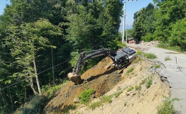 Düzce’nin Akçakoca ilçesi Hemşin köyü yolunun meydana gelen heyelan nedeniyle alanda çalışmalar başlatıldı.