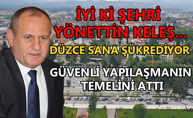 Başkanlığı döneminde kat sınırlaması uygulamasını hayata geçirdiklerini belirten Keleş, "Hızlı büyüyen bir kent olan Düzce'de kat yükseltmiyorsunuz, verimli topraklar yüzünden etrafa da genişleyemiyorsunuz o zaman yapılması gereken tek şey vardı. Sağlam bir zemin bulup o zeminde serbest hareket edebilmek. Şehir dikeyde şekillenerek hem büyüdü hem de tarım arazileri yine tarım arazisi olarak kaldı." dedi.