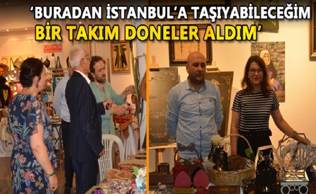 ‘Buradan İstanbul’a taşıyabileceğim bir takım doneler aldım’ Kol çantalarından eldivenlere, süs eşyalarından tablolara bir çok ürünün beğeniye sunulduğu sergiye İstanbul Ayakkabıcılar Esnaf Sanatkarlar Odası Başkanı Mehmet Karaman’da katılım sağladı. Öncü Haber mikrofonlarına konuşan Karaman, şunları söyledi: