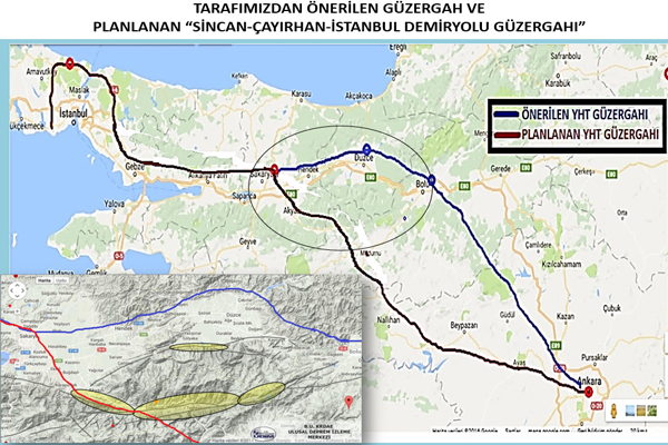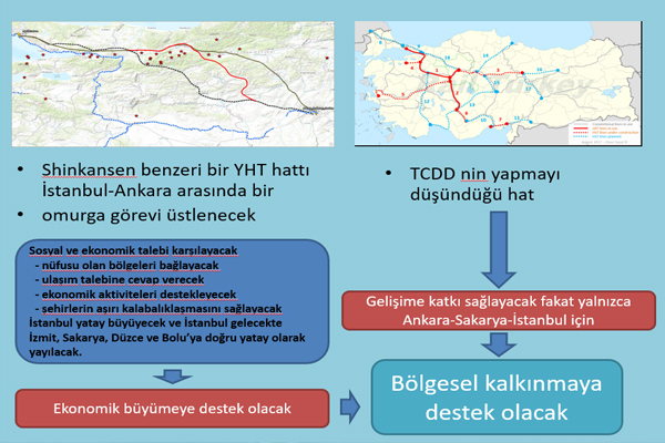 TÇDT tarafından hayata geçirilmesi planlanan Hızlı Tren Hattı Güzergahı Ankara, Sincan, Çayırhan, Sakarya, İstanbul geçmektedir. Bu projenin hayata geçmesiyle de hızlı tren Ankara, Sakarya ve İstanbul’da duracak. Ayrıca bu projenin maliyeti de 5 Milyar Dolar. Tren hattında 49 adet tünel toplamda 71.365 metre, 25 adet viyadük toplamda 13.770 metre uzunluğunda olduğundan dolayı maliyeti yüksektir. Bu projenin hayata geçmesi ile kendini amorti etse süresi güzergahta arasında insan yoğunluğunun olmamasından dolayı 17 yıl gibi bir süreyi kapsıyor. Ayrıca planlanan proje güzergahında 30 kilometrelik Kuzey Anadolu Fay Hattı geçiyor.