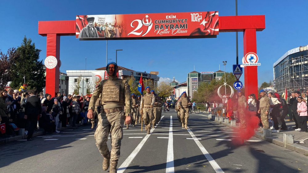 Vali Aslan’ın konuşmasının ardından tören, Düzce İl Jandarma Komutanlığı Komando Birliği’nin silahlı hareketler gösterisi, öğrencilerin müzik dinletisi, mehteran takımı konseri, halk oyunları, Gençlik ve Spor İl Müdürlüğü’nün spor gösterileri ile tören geçidinin ardından sona erdi.