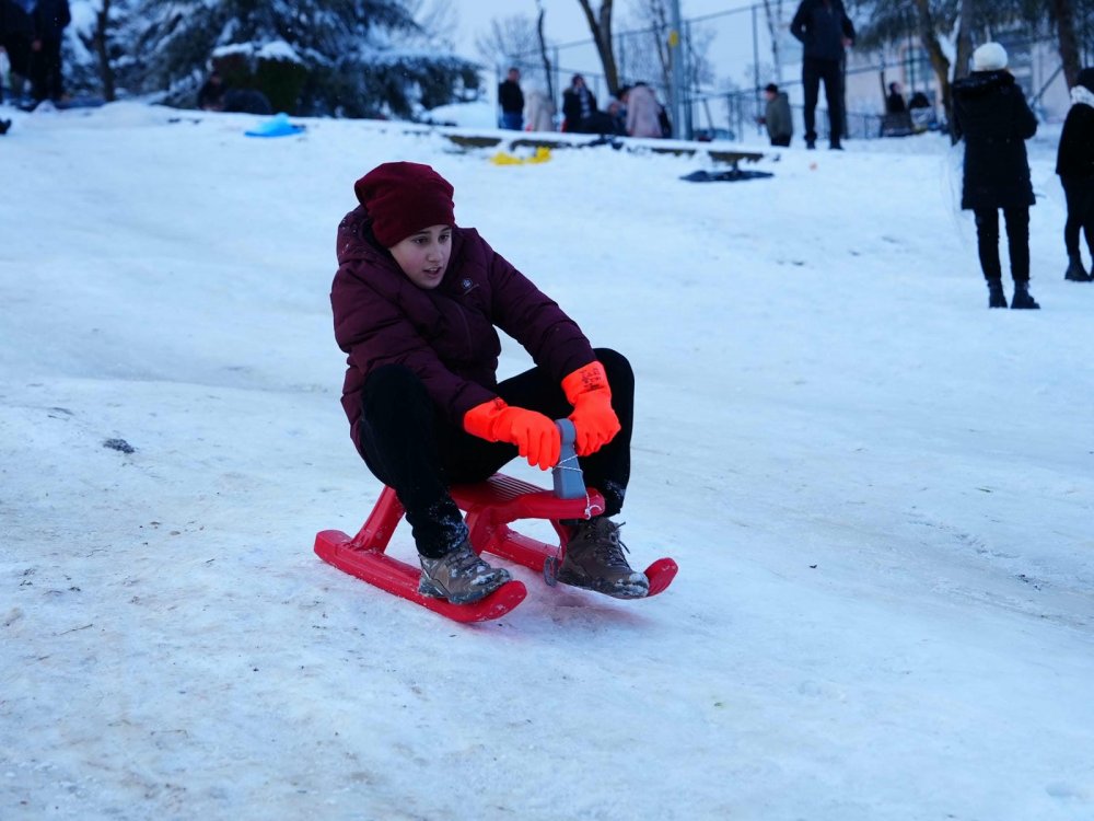 Akşam saatlerinde Bahçeşehir halkı, çocukları ile birlikte dışarıya çıkarak, kar yağışının tadını çıkarttı. Naylon poşetlerle kayan ve kar topu oynayan vatandaşlar, büyük mutluluk yaşadı.