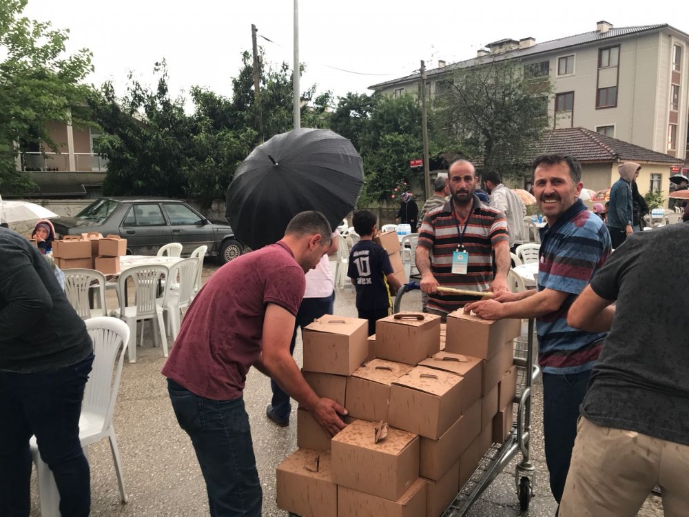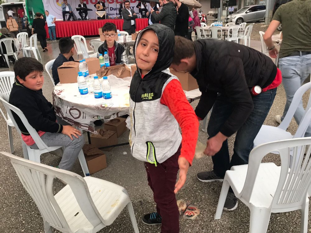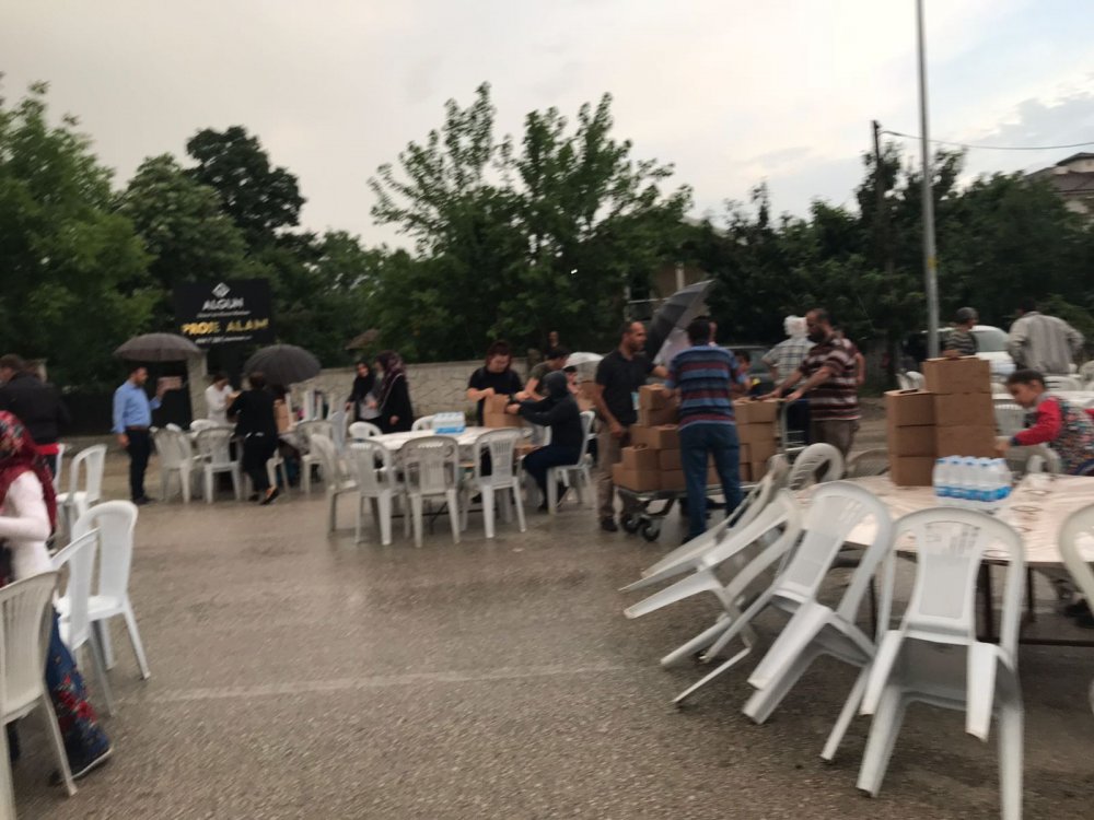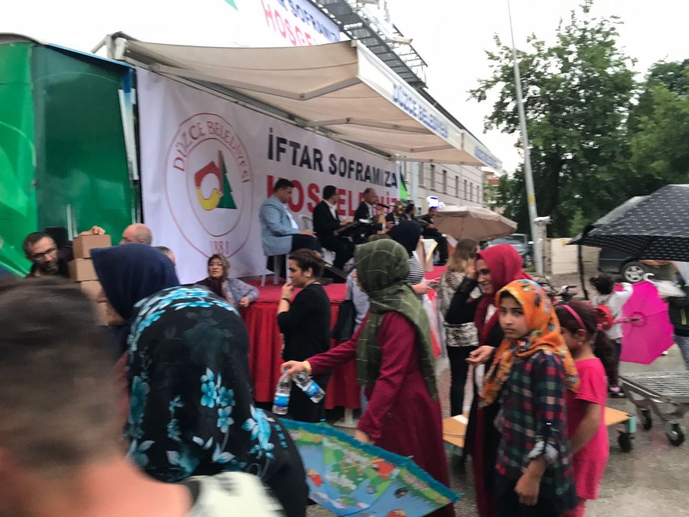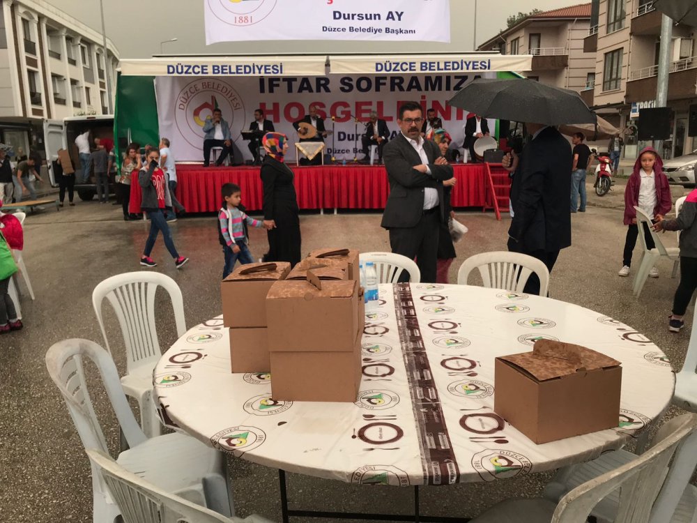 Düzce Belediyesi tarafından Aziziye Mahallesinde iftar programı gerçekleştirilecekti ancak yağan yağmur engel oldu. Açık alanda kurulan masalar yağan yağmurlar nedenle boş kaldı. Belediye Başkanı Dursun Ay, alana gelerek iftar programını iptal etti.