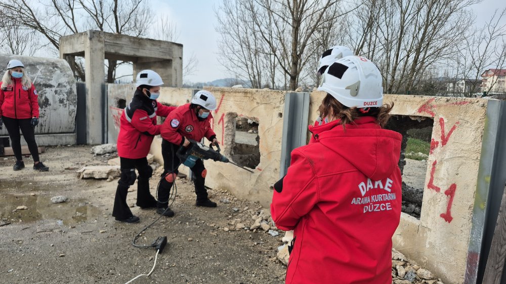 Düzce’nin ilk arama kurtarma ekibi olan DAKE’de 120 gönüllü yer alırken, 50 gönüllü ise kadınlardan oluşuyor. Son 15 yılda Türkiye’de meydana gelen başta depremler olmak üzere sel, yangın gibi birçok afette görev yapan kadınlar, erkek gönüllülerle birlikte omuz omuza afetzedeleri hayata bağlamak için görev yaptılar.