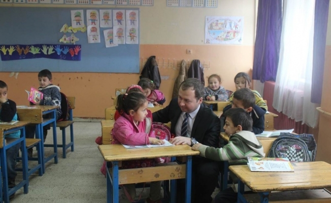 Kaymakam Muhammed İkbal Yelek, İlçe Milli Eğitim Müdürü Mehmet Aldırmaz ile birlikte Aksaklar okulunu ziyaret etti.