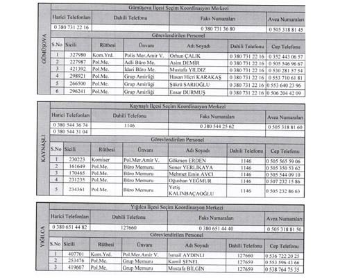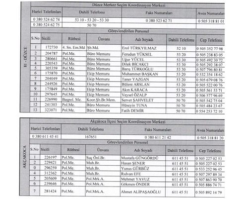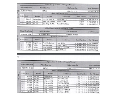 Ayrıca yapılan açıklamada seçim Koordinasyon Merkezlerinin telefon ve faks numaraları da verildi.