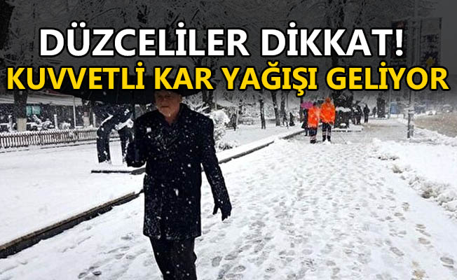 Meteoroloji Genel Müdürlüğü Düzce ve çevresi için kuvvetli kar ve tipi yağışı uyarısı yaptı. Olumsuz hava şartlarına karşı Düzceli vatandaşların dikkatli ve tedbirli olmaları istendi.
