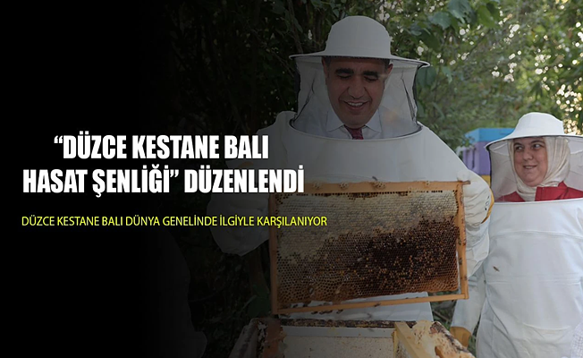Düzce Kestane Balı, Düzce toprağının bereketi ve üreticilerin emekleriyle sofralara ulaşmaya devam ediyor. 801 arı işletmesiyle yaklaşık 450 ton bal üretiminin yapıldığı Düzce’de, “Kestane Balı Hasat Şenliği” düzenlendi. Düzce Valiliği koordinasyonunda; Düzce İl Tarım ve Orman Müdürlüğü, Düzce İl Özel İdaresi ve Düzce İli Arı Yetiştiriciliği Birliği iş birliğinde düzenlenen Düzce Kestane Balı Hasat Şenliği’ne; Düzce Valisi Selçuk Aslan, Düzce Üniversitesi Rektörü Prof. Dr. Nedim Sözbir, protokol üyeleri ve kestane balı üreticileri katıldı.