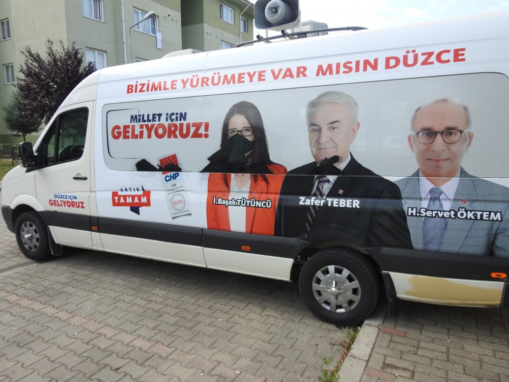 Düzce’de Cumhuriyet Halk Partisi il yönetimini taşıyan üzeri Cumhuriyet Halk Partisi Düzce Milletvekili Adaylarının fotoğraflarıyla giydirilen otobüse dün gece kimliği belirsiz kişi yada kişilerce bir saldırı gerçekleşti.