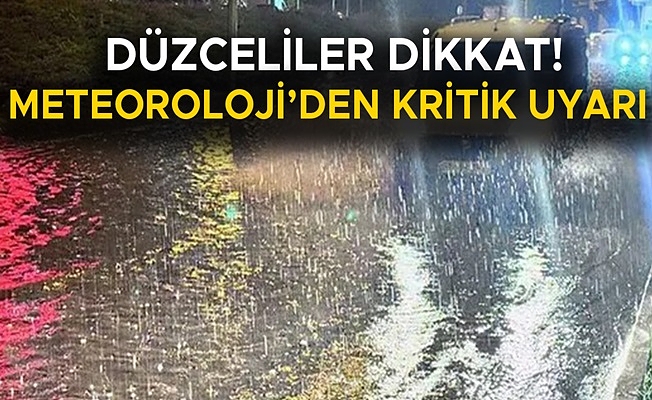 Meteoroloji Genel Müdürlüğü Analiz ve Tahmin Merkezi tarafından yapılan uyarıda, Düzceli vatandaşların sel, ani su taşkınları, yıldırım düşmesi ve trafikte yaşanabilecek olumsuzluklara karşı dikkatli ve tedbirli olmaları istendi.