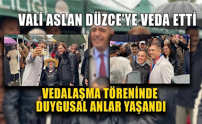 Vali Aslan için düzenlenen veda törenine Vali Yardımcıları, Düzce Cumhuriyet Başsavcısı Yasin Emre, Düzce İl Emniyet Müdürü İbrahim Ergüder, İl Jandarma Komutanı Kıdemli Albay Mustafa Tetik, kurum il müdürleri, valilik personeli, siyasi parti il başkanları, STK temsilcileri ve 7’den 70’e çok sayıda vatandaş katıldı.