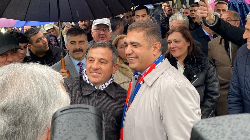 Alkışlar eşliğinde Valilik binasından çıkan Vali Aslan, yağan yağmur ve soğuk havaya rağmen kendisini dışarıda bekleyenlerle tek tek tokalaştı.