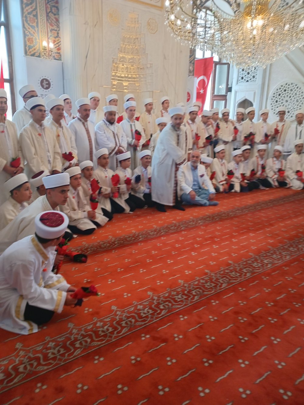 Türkseven Şirketler Grubu Onursal Başkanı Ömer Faruk Türkseven ise hafız olan öğrencilere kırmızı güllerle birlikte çeyrek altın takdim etti.