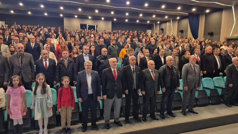 Düzce Gençlik ve Spor İl Müdürlüğü Konferans Salonu'nda düzenlenen kutlama törenine Düzce Valisi Selçuk Aslan, İl Milli Eğitim Müdürü Gülşen Özer, CHP Düzce Milletvekili Talih Özcan, protokol üyeleri, öğretmenler ve öğrenciler katıldı.