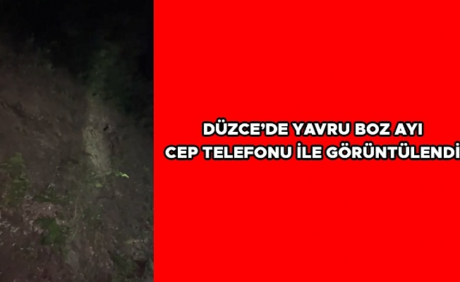 Düzce’de yavru boz ayı, doğal ortamında bir vatandaş tarafından cep telefonu ile görüntülendi. ‘Aslanım buraya gel’ diye yavru ayıya seslenen vatandaşın görüntüleri sosyal medyada birçok beğeni aldı.