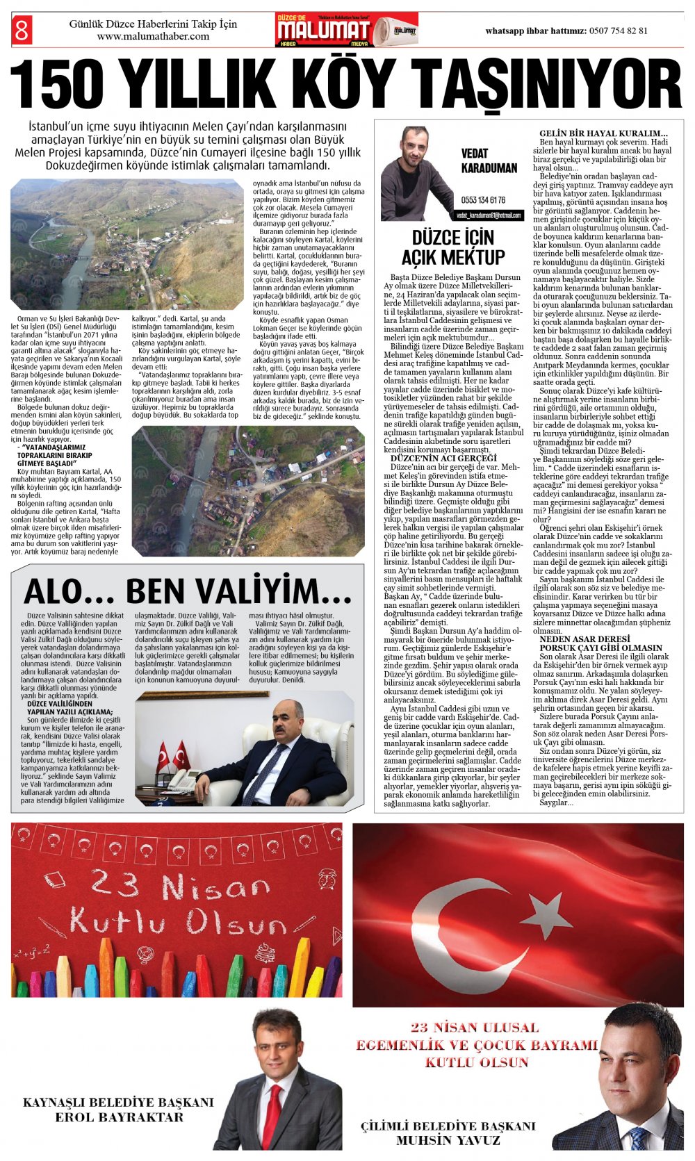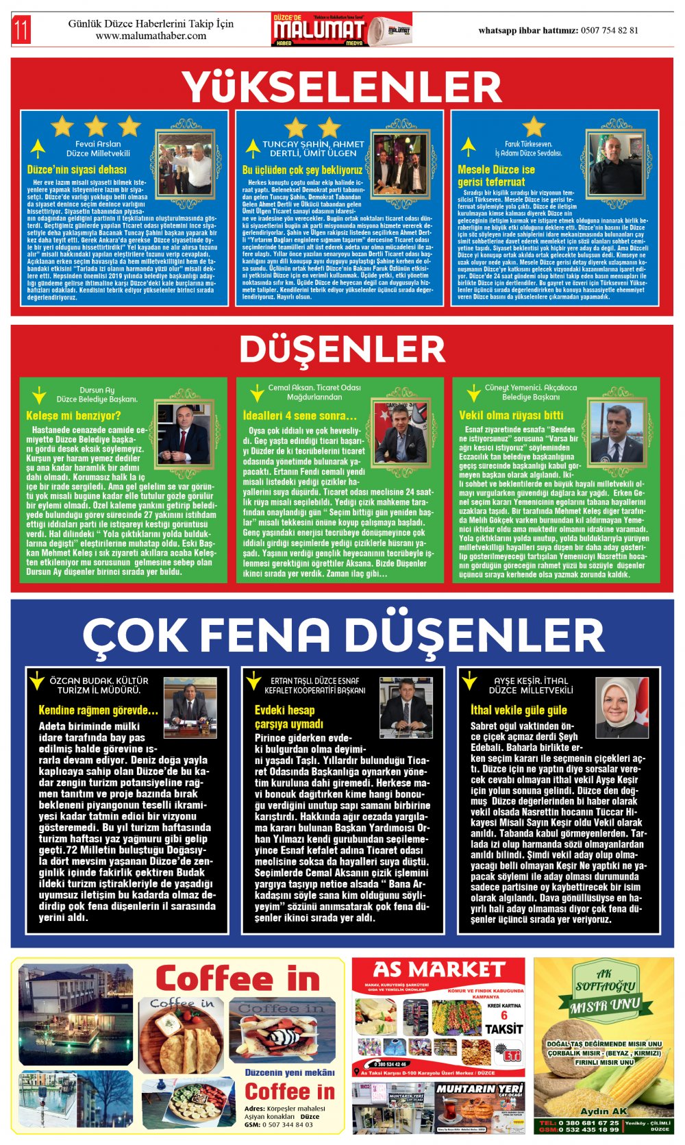 Düzce Malumat Haber olarak yeni sayımız ile siz değerli okuyucularımızla birlikteyiz.