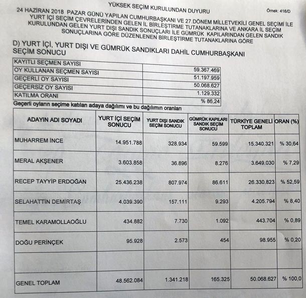 Yurt içi seçim sonucu: 20.559.732