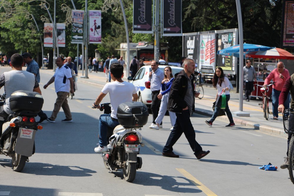 Caddenin girişinde motosiklet ve bisikletin giremeyeceğine yönelik tabelaların asılmış olmasına karşın bunu umursamayan ve yayaların kullanım alanına girmekten kaçınmayan bisiklet ve motosikletliler yayaların yaralanmalarına neden olabilecek kazalara davetiye çıkarıyorlar.
