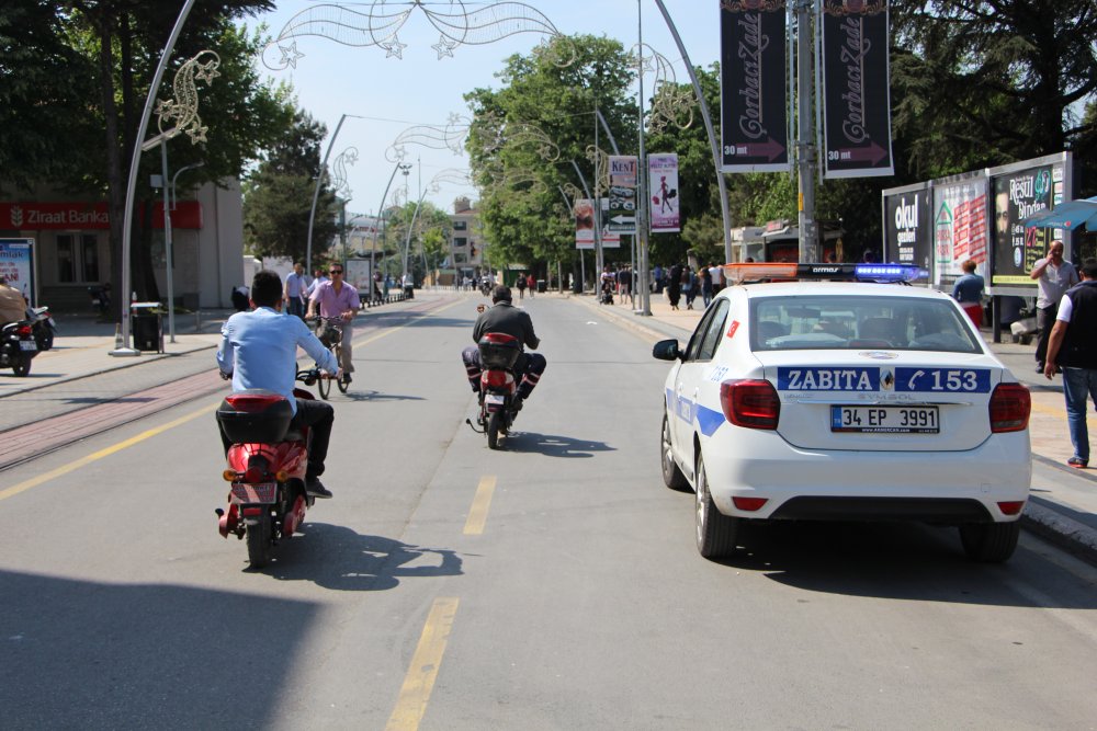 İstanbul Caddesi üzerine park etmiş halde bekleyen zabıta aracı yanında vızır vızır geçen motosiklet ve bisikletlilere sesini çıkarmıyor, gerçeği çıkarsa da kimse umursamıyor. Düzce Belediyesi tarafından İstanbul Caddesine motosiklet ve bisikletlerin girmelerinin önünü kesmek adına cadde üzerinde uygulama yapılmış ve 10 motosiklet sürücüsüne toplamda 2 bin 600 lira para cezası kesilmişti. Ancak zabıtanın kesmiş olduğu cezalar pek işe yaramışa benzemiyor.
