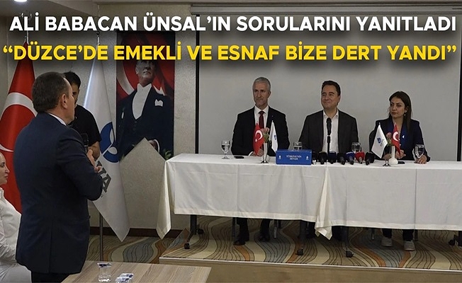 Düzce temaslarındaki izlenimlerini de anlatan Ali Babacan, emekli ve esnafların ekonomik nedenlerden dolayı kendilerine dert yandığını belirterek “Bugün Düzce’de ilk geldiğimiz yer Merkez Büyük Camisi’nin bulunduğu meydan. Orada emekli vatandaşlarımızın ağırlıklı olduğu bir toplulukla selamlaştık. Cuma namazından sonra yine sohbet ettik, esnafımızı ziyaret ettik ve Düzce TSO’ya geçtik. Şu ana kadar Düzce ile ilgili çektiğimiz fotoğraf bu. Ama emeklimiz feryat ediyor, ‘14 bin TL maaşla benim geçinmem imkansız’ diyor. Diyor ki; ‘emekliyim, ama ayrıca bir iş yapmasam, ayrıca bir maaş almasam, benim geçinmem mümkün değil’ diyor. Yani Düzce’deki emeklimizin son durumu bu. Esnafımız da ‘İnşallah işler bir gün toparlar’ diye sabırla bekliyor. Alışveriş için sokaklarda gezen vatandaşlarımın ise sayısının çok düşük olduğunu gördük. Yani çarşıda bir alışveriş kalabalığı göremedik maalesef. Yani şuana kadar gördüğümüz Düzce Tablosu bu” açıklamalarında bulundu.