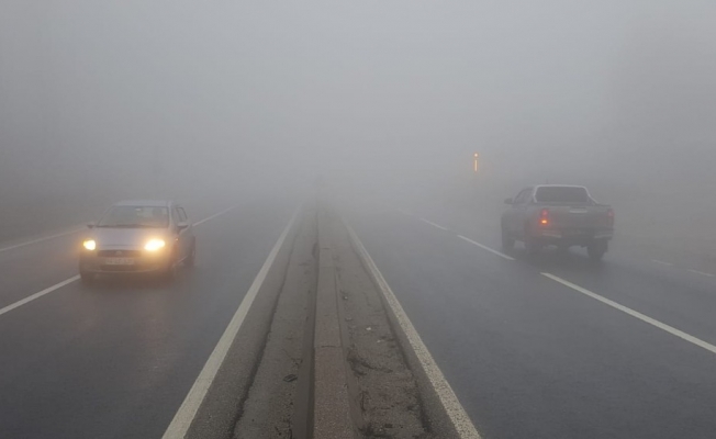 Bolu Dağı’nda sis nedeniyle görüş mesafesinin yer yer 10 metreye kadar düşmesi nedeniyle sürücüler trafikte zor anlar yaşıyor.