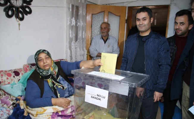 DÜZCE(İHA) – Düzce’de yatağa bağlı yada felci olan 16 seçmen için oy sandığı evlerine gitti. Seçim kurulu görevlileri evlere giderek başvuru sahiplerine oy kullandırdılar.