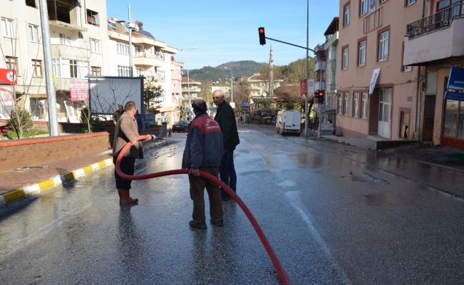 DÜZCE(İHA) –Yığılca Belediyesi ilçede alt yapı ve üst yapısı bitirilen cadde ve sokaklarda sonbahar temizliği yapıyor.