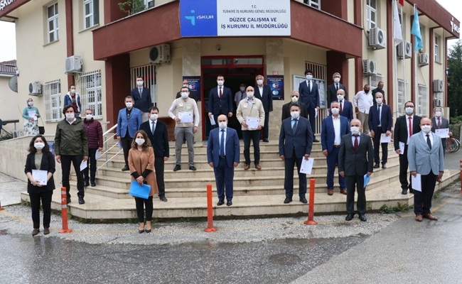 Düzce Valisi Dr. Zülkif Dağlı, koronavirüs ile mücadele çalışmaları kapsamında yoğun mesai harcayan İŞKUR çalışanlarına teşekkür belgesi takdim etti. Belge töreninde konuşan Vali Dağlı, “İŞKUR çalışanları tüm işletmelerimizi, sanayicilerimizi ve çalışanlarımızı mağdur etmedi. Pandemi sürecinde büyük gayret gösterdiler.” dedi.