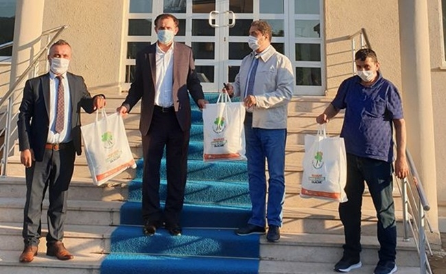 Ankara Düzceliler Derneği Başkanı Semih Kıbrıs ile birlikte Kaynaşlı Belediye Başkanı Birol Şahin’i makamında ziyaret eden AK Partili Mamak Belediye Başkanı Murat Köse, beraberinde getirdikleri maskeleri, Başkan Şahin’e takdim etti.